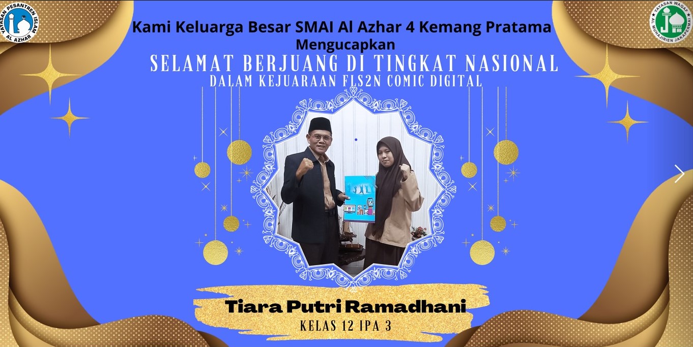 Kami segenap Keluarga Besar SMAI Al Azhar 4 Kemang Pratama mengucapkan “Selamat Berjuang” untuk ananda Tiara Putri Ramadhani dari kelas 12 IPA 3 dalam ajang perlombaan FLS2N Digital Comic. Semoga sukses dan kembali menorehkan prestasi gemilang. 😊✊ #FLS2NAlazhar#alazharprestasi#alazharbekasi#alazharjakapermai.bekasi #alazharkemangpratamabekasi#alazhargrandwisatabekasi#ypialazhar#ypia#ypi_alazhar#alazharuntukindonesia#sekolahpenggerak#aksiantiperundungan#pjbl#ywamjp#ywalmuhajirien#pmb2223#prestasi2022#covid19INA#merdekabelajar#bersamahadapikorona———@ywalmuhajirien@ypi_alazhar@msyafiudin09@tkia8jp@kbtkia11_kp@sdi_alazhar6@sdia9kp@mialmuhajirien@smpia6@smpia8@smpia9bks@smpia44@smaislamalazhar4@smaialazhar18@masjidjamialazharjakapermai@kbihualazharbekasi@alazhar_wisatajakapermai@pusdiklat_almuhajirien@jamiyyahtkia8jp@jamiyyah_tkia_11@jamiyyah.sdialazhar6jp@jamiyyah.sdiaalazhar9@jamiyyahmialmuhajirienjp@jamiyyah_6jp@jamiyyah.smpia8kp@jamiyyah.smpia9@jamiyyahsmpia44@jamiyyahsmaialazhar4@alazharbekasi@alazharjakapermai.bekasi@alazharkemangpratamabekasi@alazhargrandwisatabekasi