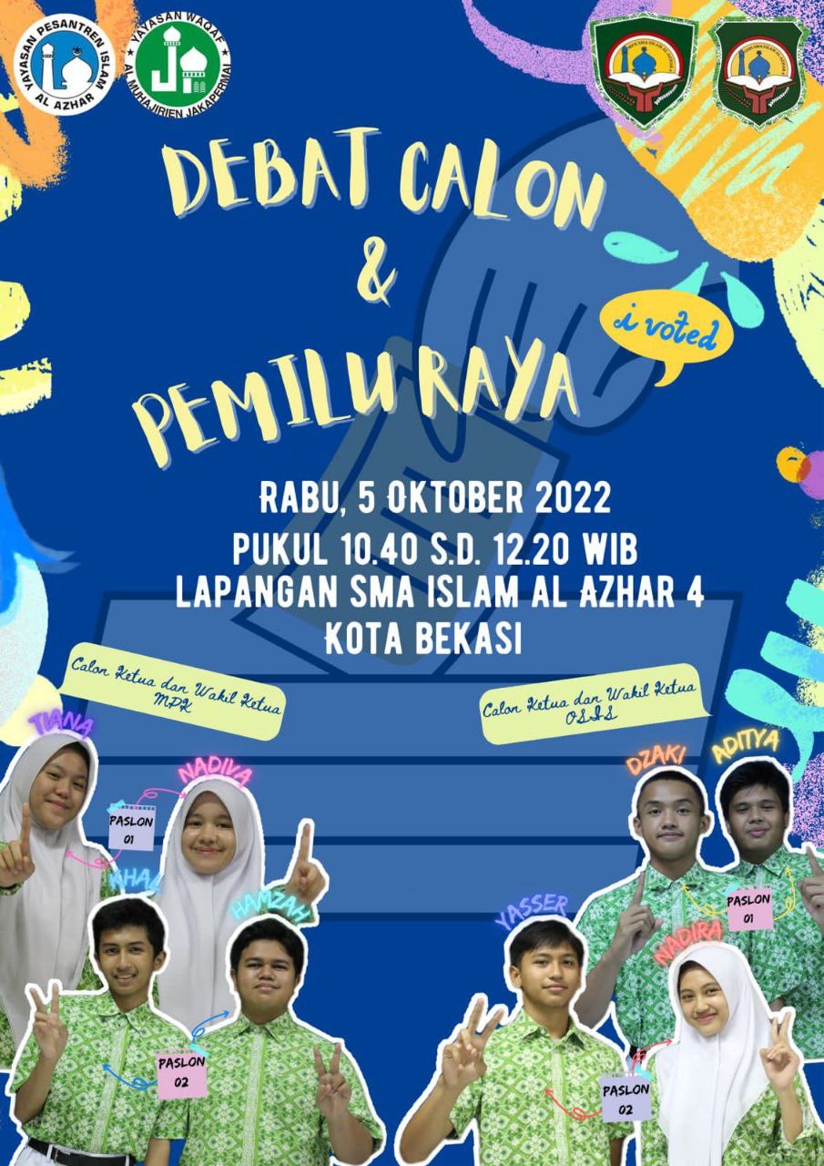 Alhamdulillah, telah berlangsung debat dan pemilu untuk seluruh warga SMA ISLAM AL AZHAR 4 KEMANG PRATAMA untuk vote ๐๐ฒ๐๐๐ฎ ๐ฑ๐ฎ๐ป ๐ช๐ฎ๐ธ๐ถ๐น ๐๐ฒ๐๐๐ฎ ๐ข๐ฆ๐๐ฆ/๐ ๐ฃ๐๐ฃ๐ฒ๐ฟ๐ถ๐ผ๐ฑ๐ฒ ๐ฎ๐ฌ๐ฎ๐ฎ-๐ฎ๐ฌ๐ฎ๐ฏ @osismpksmaia4 pada tanggal 5 Oktober 2022ย Semangat pemilu raya dan Selamat kepada Ketua dan Wakil Ketua Osis dan MPK yg telah terpilih. semoga dapat mengemban amanah yang di titipkan dan mampu […]