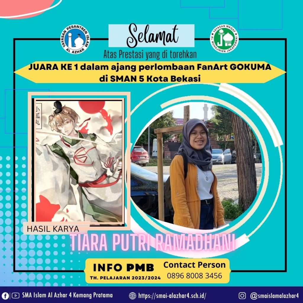 Selamat kepada ananda TIARA PUTRI RAMADHANI yang telah menorehkan prestasinya dalam ajang “FanArt GOKUMA” dan meraih JUARA 1.