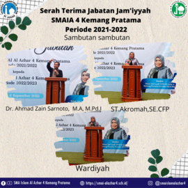Serah Terima Jabatan Jam’iyyah SMA Islam Al Azhar 4 Kemang Pratama Periode 2021 – 2022 dari Ketua Jam’iyyah ibu H.ST.Akromah,SE.CFP kepada Ketua Jam’iyyah baru Periode 2022 – 2023 ibu Wardiyah.